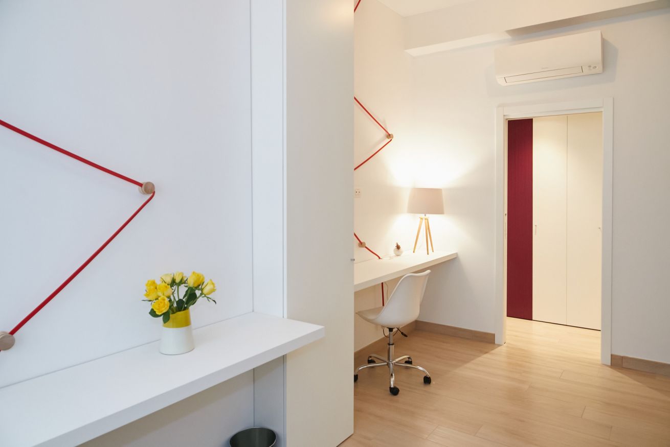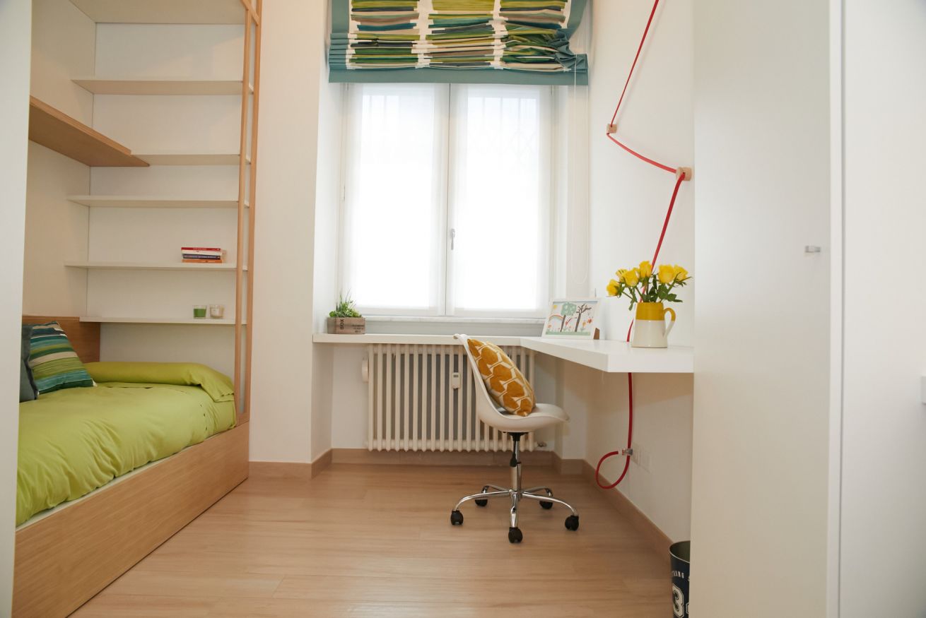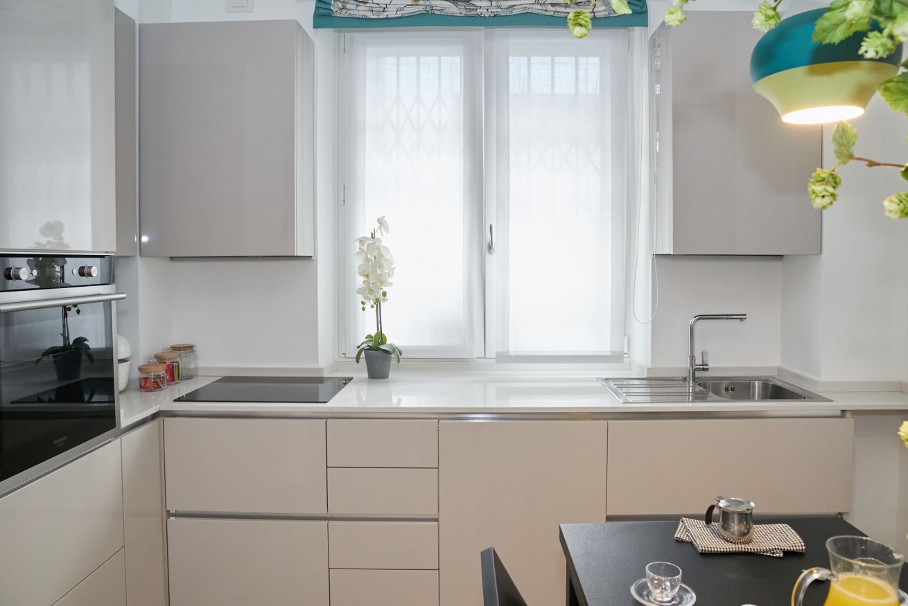 Questa casa è una gioia per gli occhi e per il cuore di chi vi soggiorna! Il suo aspetto fresco e moderno ha un gusto universale e dona una sensazione di assoluta familiarità e accoglienza. Si trova al piano terra di un palazzo che sorge a due passi dalla bellissima Piazza Piemonte, ha due camere da letto, una matrimoniale e una con due letti singoli, entrambe finestrate e dotate di aria condizionata e riscaldamento centralizzato.