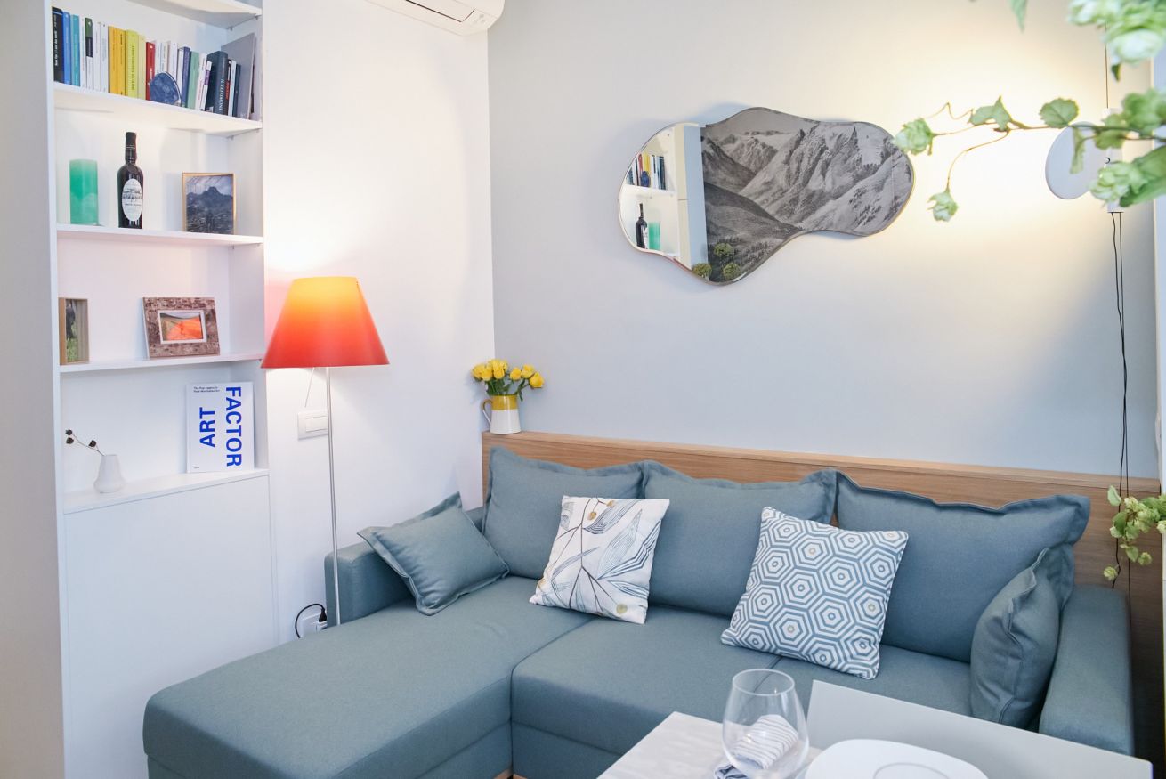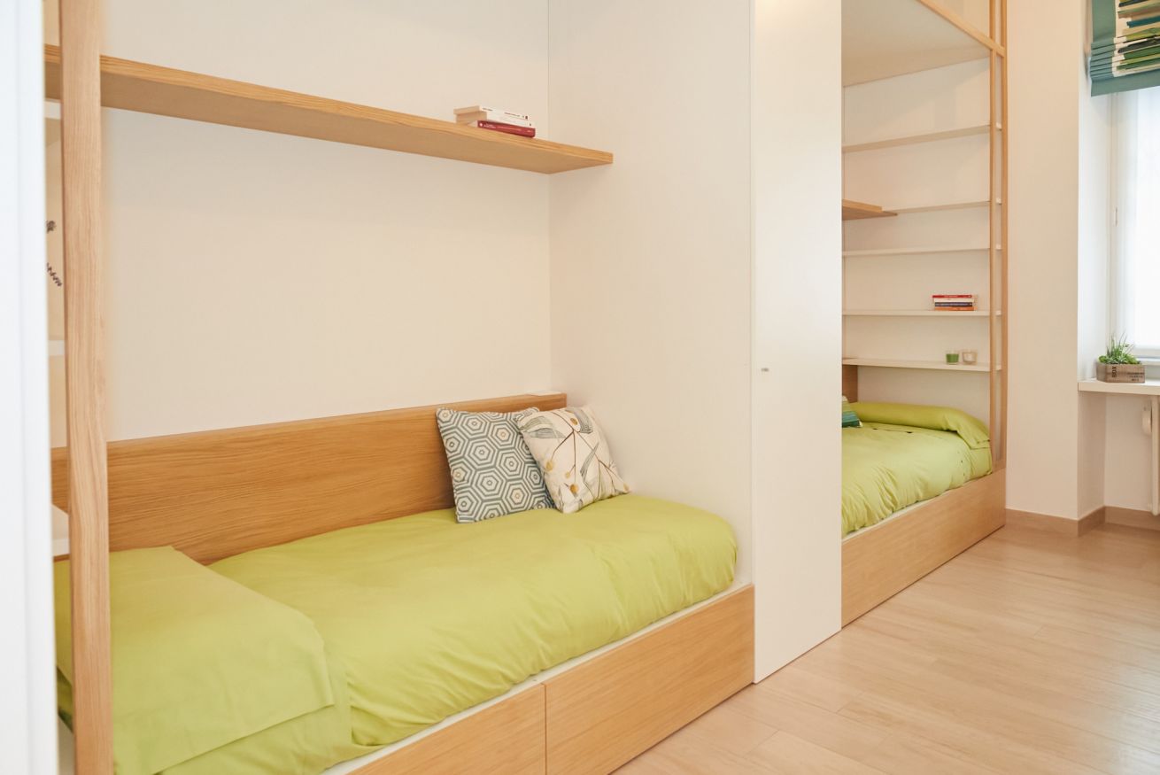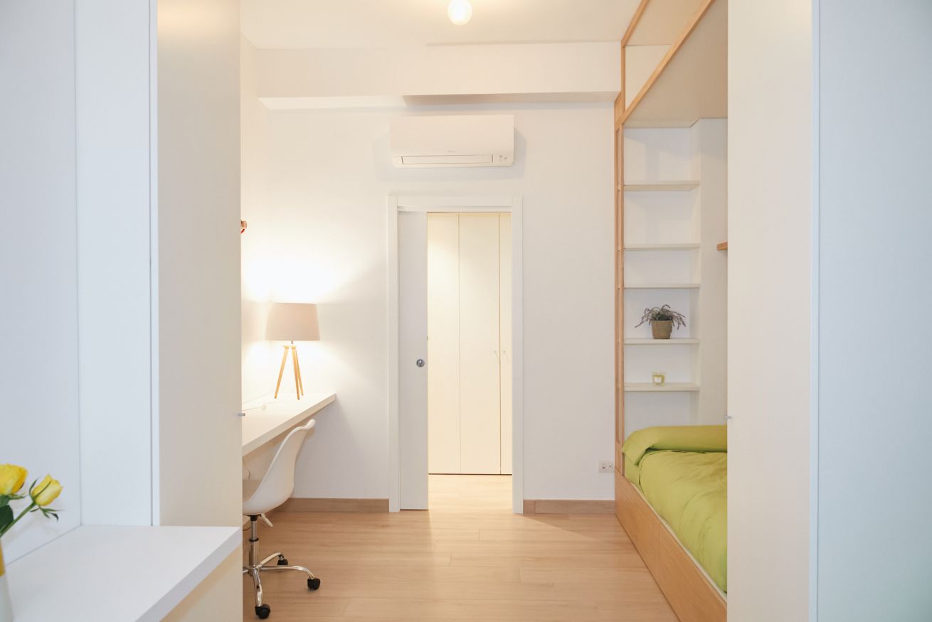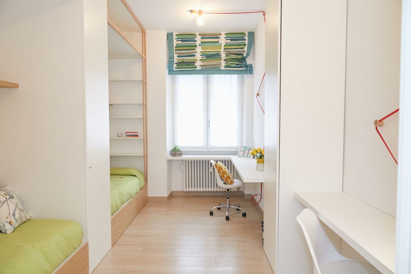Questa casa è una gioia per gli occhi e per il cuore di chi vi soggiorna! Il suo aspetto fresco e moderno ha un gusto universale e dona una sensazione di assoluta familiarità e accoglienza. Si trova al piano terra di un palazzo che sorge a due passi dalla bellissima Piazza Piemonte, ha due camere da letto, una matrimoniale e una con due letti singoli, entrambe finestrate e dotate di aria condizionata e riscaldamento centralizzato.