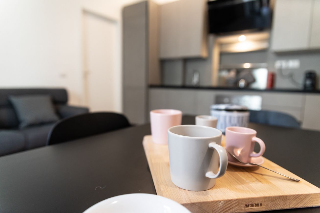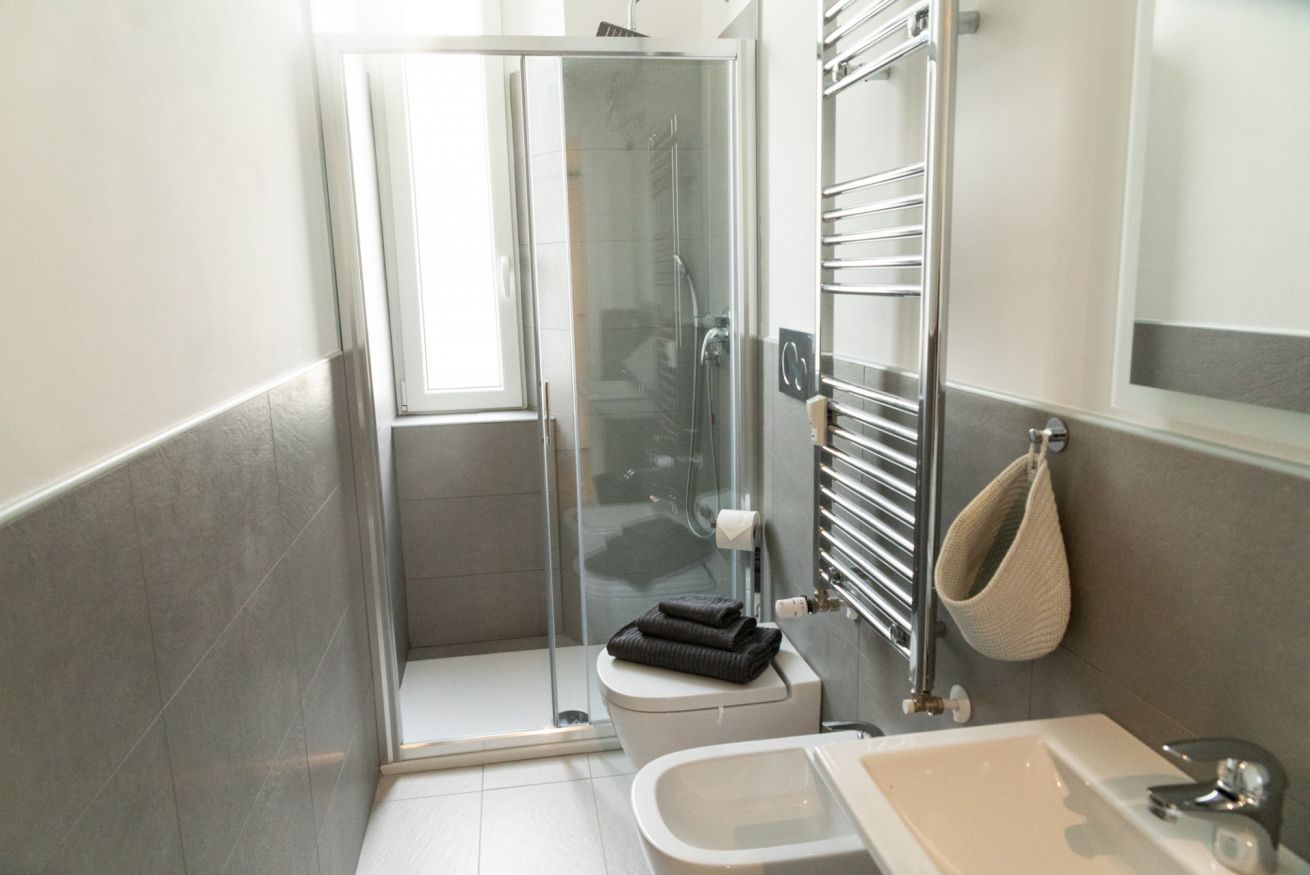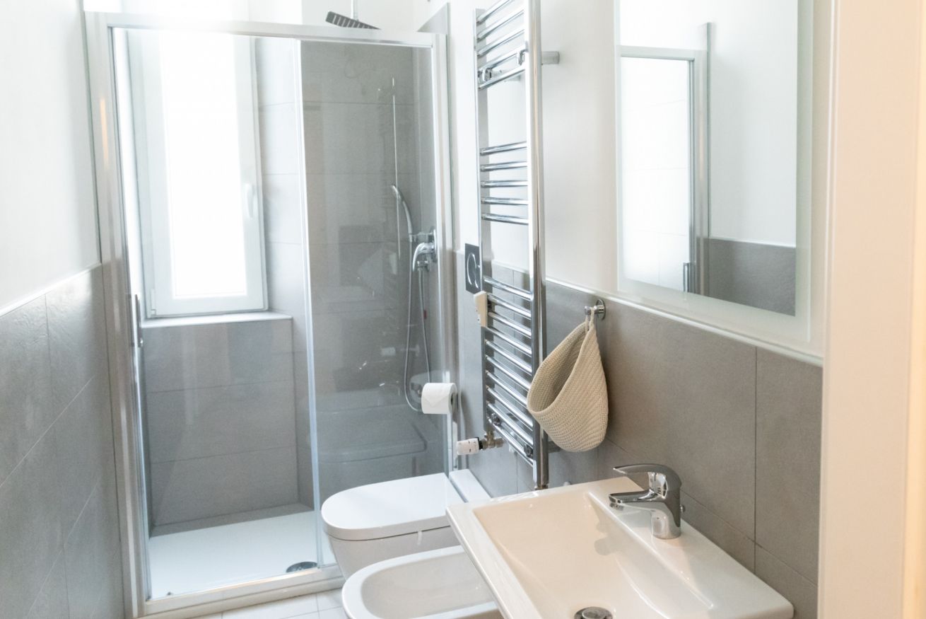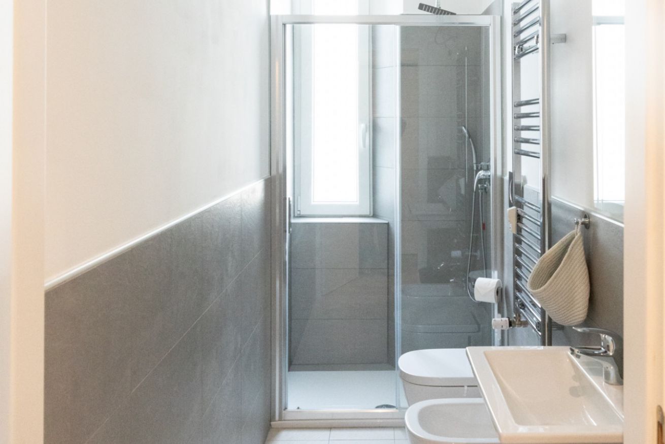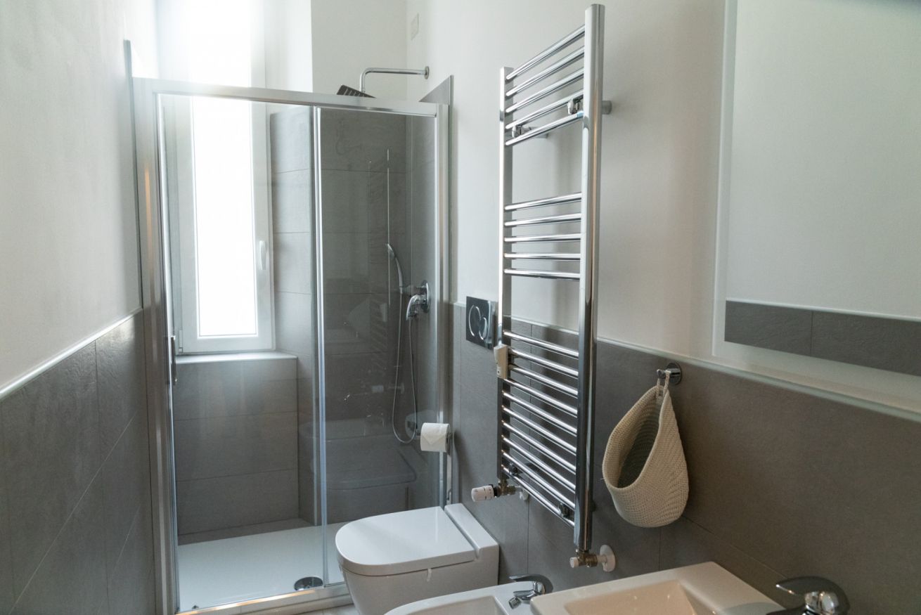 Questo bilocale situato proprio nel cuore della zona di Loreto è perfetto per chi ama un ambiente minimal chic, dove tutto è pensato per rilassare l'occhio di chi entra e vuole sentirsi subito a casa. I colori infatti sono tutti declinati sul bianco, il grigio e il nero, senza eccessi cromatici o abbondanza di oggetti: c'è tutto il necessario per un soggiorno piacevole e rilassante.